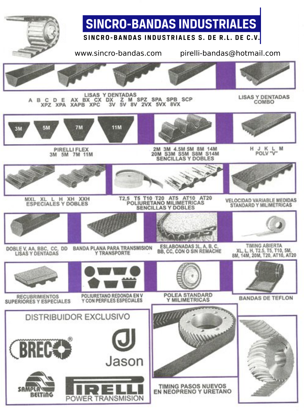 DENTADAS PASO AMERICANO MXL-XL-L-H-XH-XXH NEOPRENO Y URETANO SENCILLAS Y DOBLES